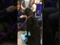 Tiffy is a german wirehaired pointer is as sweet as can be. She has super shiny, soft black fur and is roughly 51 pounds of all legs and playfulness! She loves to play fetch, and will either shake, give you high 5 or slap you a 10 paw for her treats. She is fully potty trained and the perfect cuddle partner.