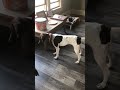 I am a 2 year old female German Shorthair Pointer and I am full of energy. I love to run and I am very strong. I love to hunt for squirrels, birds, and bunnies, and I can run from window to window, or along the fence line all day trying to get at them.