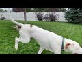 Gunner is also a funny and goofy boy! The neighborhood knows him as the dog who likes to jump during his walks. He gets so excited and LEAPS into the air with joy . He has improved significantly with sitting and taking direction as he is very treat-motivated. We use a “sit” command to calm and redirect him. Gunner has a ton of energy and when properly directed, he’s a lot of fun!